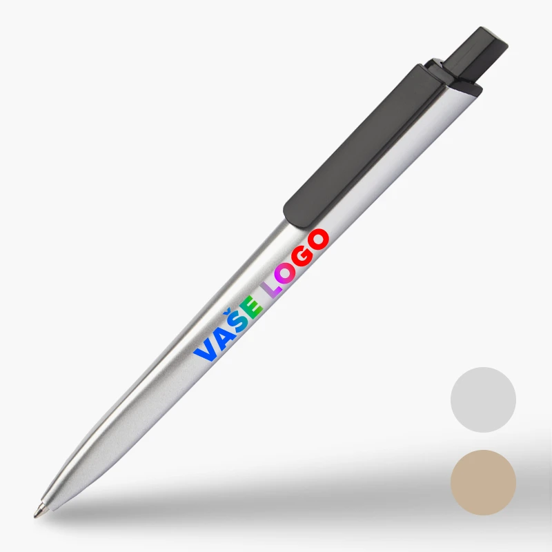 Plastové pero s vlastnou potlačou a modrou tuhou. Potlač je zahrnutá v cene.